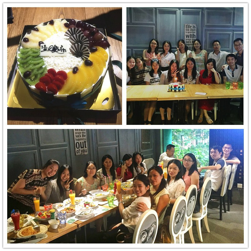 2016年7月22日晚,營(yíng)銷中心第一、二季度員工生日會(huì)在綠茵閣餐廳舉行。生日會(huì)當(dāng)晚,壽星們少了平日的幾分忙碌,多了幾許濃濃的人情味,大家歡聚在一齊用餐,同時(shí)公司還為壽星們準(zhǔn)備了精美的小禮物。現(xiàn)場(chǎng)呈現(xiàn)一派歡樂(lè)祥和的氣氛,壽星一起許愿吹蠟燭,然后一起分享生日蛋糕的時(shí)候,生日會(huì)的氣氛推向了高潮。一張張燦爛的笑臉,一聲聲真誠(chéng)的祝愿,一樣的生日聚會(huì),每次都給“光華人”不同的感動(dòng)!
